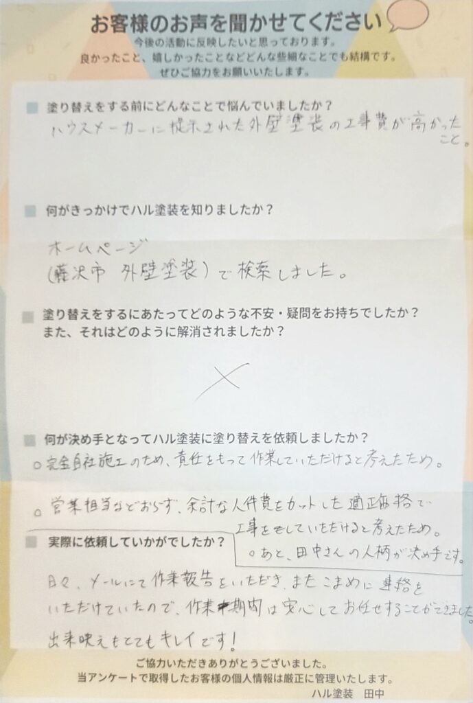 塗り替えをするにあたってどのような不安・疑問をお持ちでしたか?それはどのように解消されましたか?