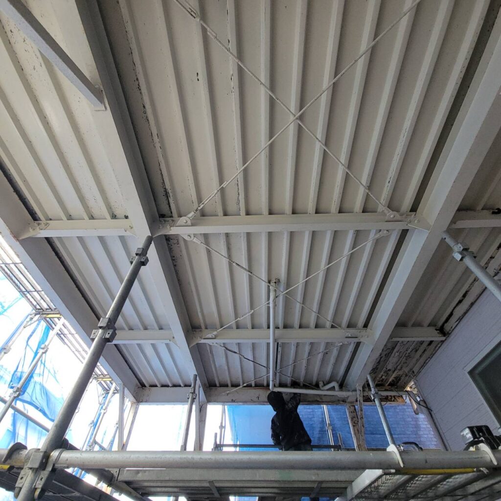 駐車場の鉄骨が雨が当たらないため、