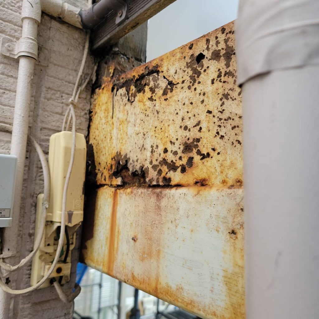 鉄骨が錆びて穴がある箇所は、