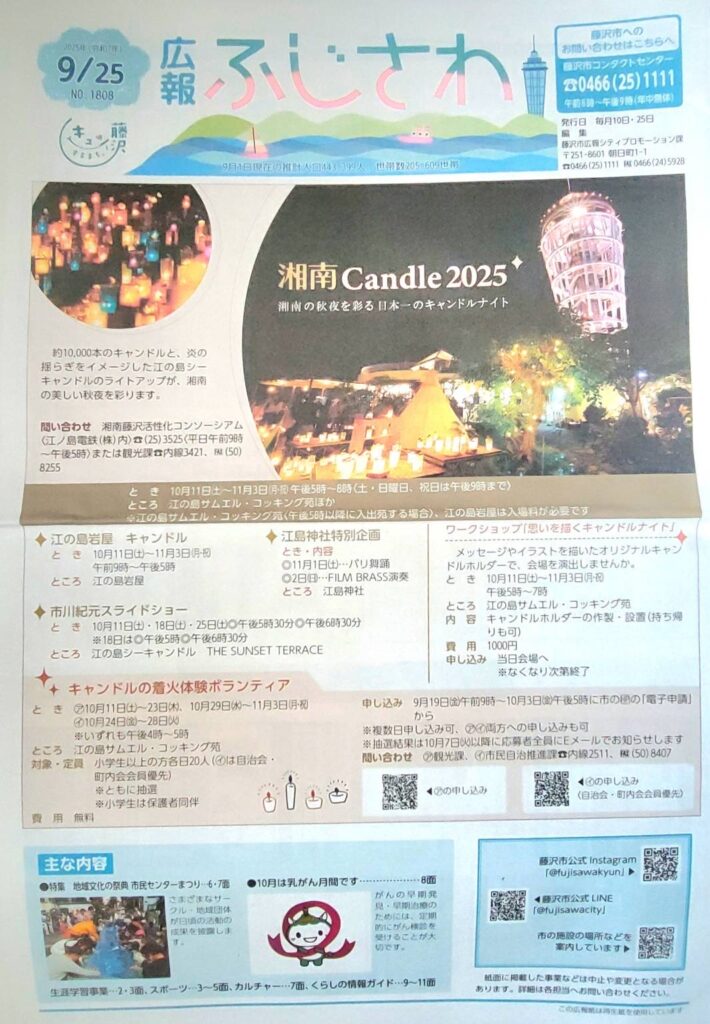 本日9月25日は広報ふじさわに掲載しております。