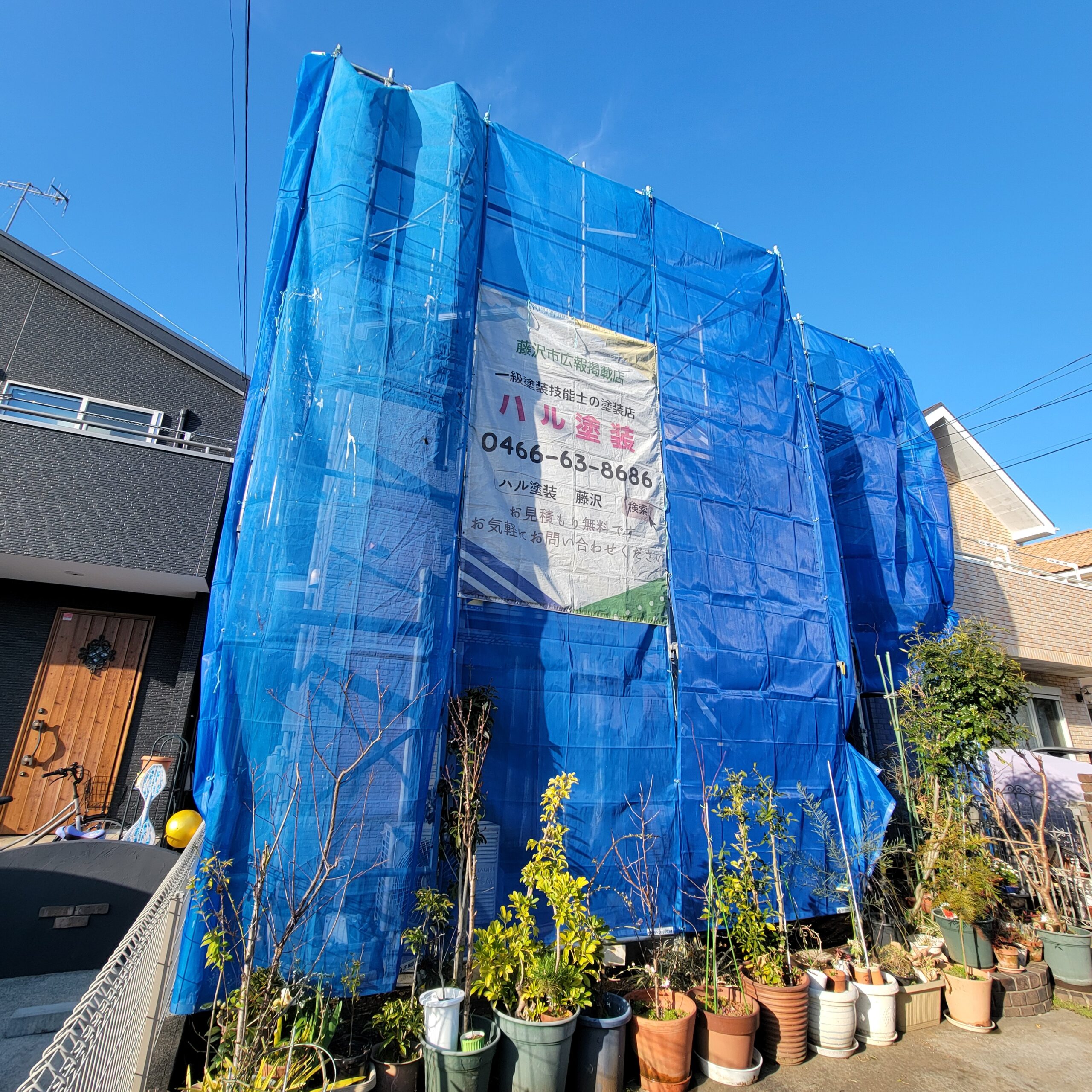本日より藤沢市稲荷にて塗装工事着工となります。 今回ご依頼の塗装ヶ所は☺️屋根・アスファルトシングル屋根の塗装外壁・サイディング ツートン仕上げ天井、破風板、雨樋、水切り、霧除け、シャッターBOXバルコニー防水(トップコート)基礎回りの塗装とな... -