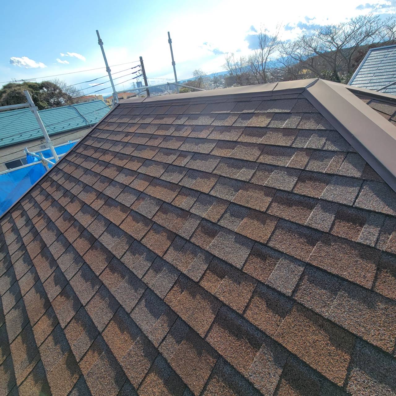桜がチラチラと咲き始めてたり、 まったく咲いてなかったりと、 いつ頃満開になるのか、 お花見を早く楽しみたい今日この頃です😆笑 ただいま施工中の屋根です。 アスファルトシングル屋根で、 おしゃれな屋根材です。素材がざらざらとしてて、 数年建つと... -