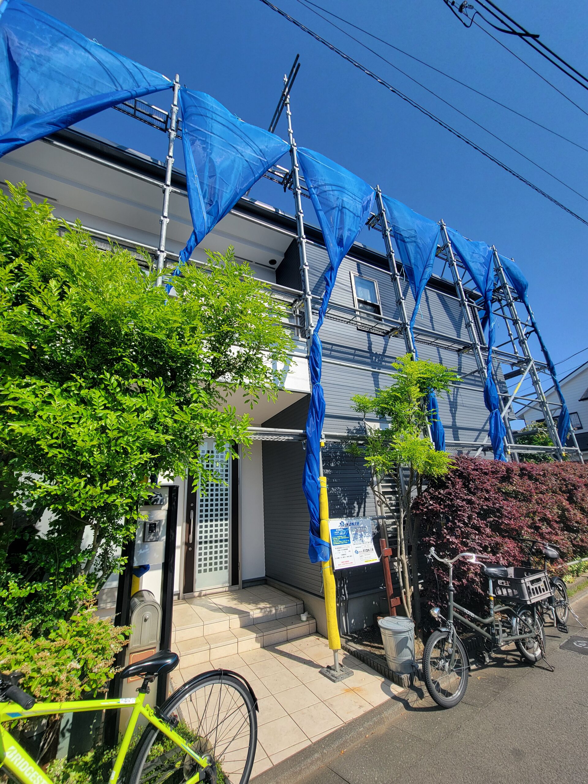 5月の下旬から、 藤沢市藤沢で塗装工事を進めておりました、現場の足場解体を本日行います。 約3週間程度、塗装工事を行っており、 近隣の皆様におかれましてはご協力を賜りまして誠にありがとうございました。 足場のメッシュシートを外して お客様に確認... -