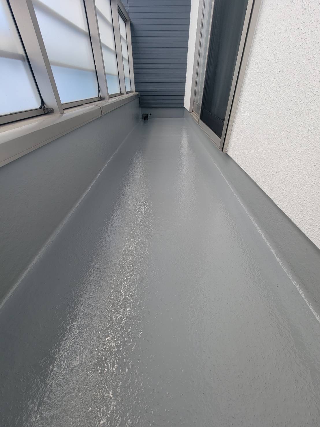 ただいま施工中の ベランダ内の サイディング壁、天井(軒天)、破風板、雨樋、 防水(トップコート)が終わりました😊 施工前 ベランダ2ヶ所 サイディングの色分けに少し苦戦しました。 エアコンカバーがあり、幅が狭く、テープが思うように行かなくて大変...