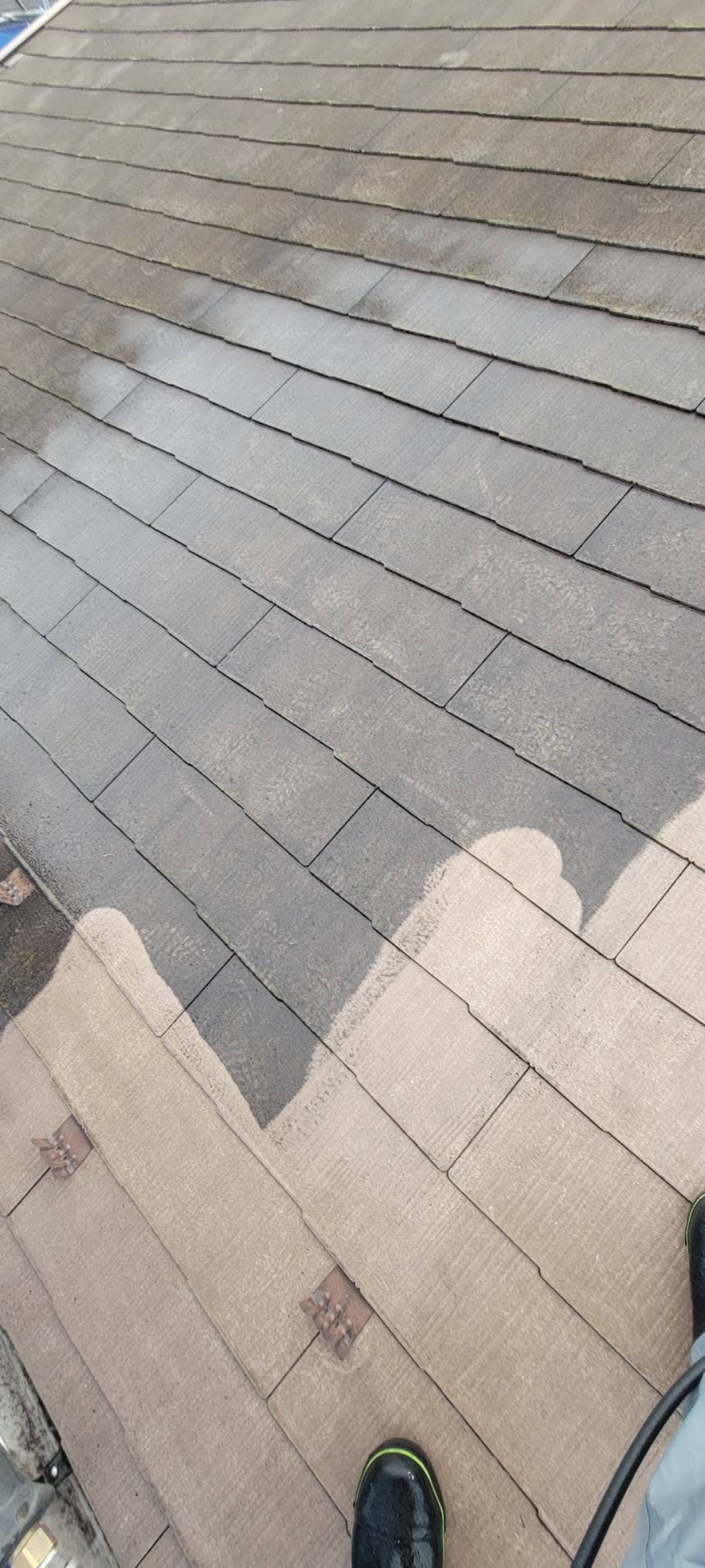 ただいま施工中の現場では屋根の塗装を行なっています! 先日の水洗いの様子をご紹介します😊施工前の屋根の様子は・・・ こんなふうに汚れやこけで黒っぽくなっています💦これを高圧洗浄機を使い、水圧で綺麗に洗浄していきます✨ 洗浄した部分と比較する... -